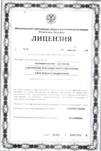 | Полное наименование образовательной организации* | Муниципальное казенное учреждение дополнительного образования «Дом Детского Творчества» п.Шамилькала |